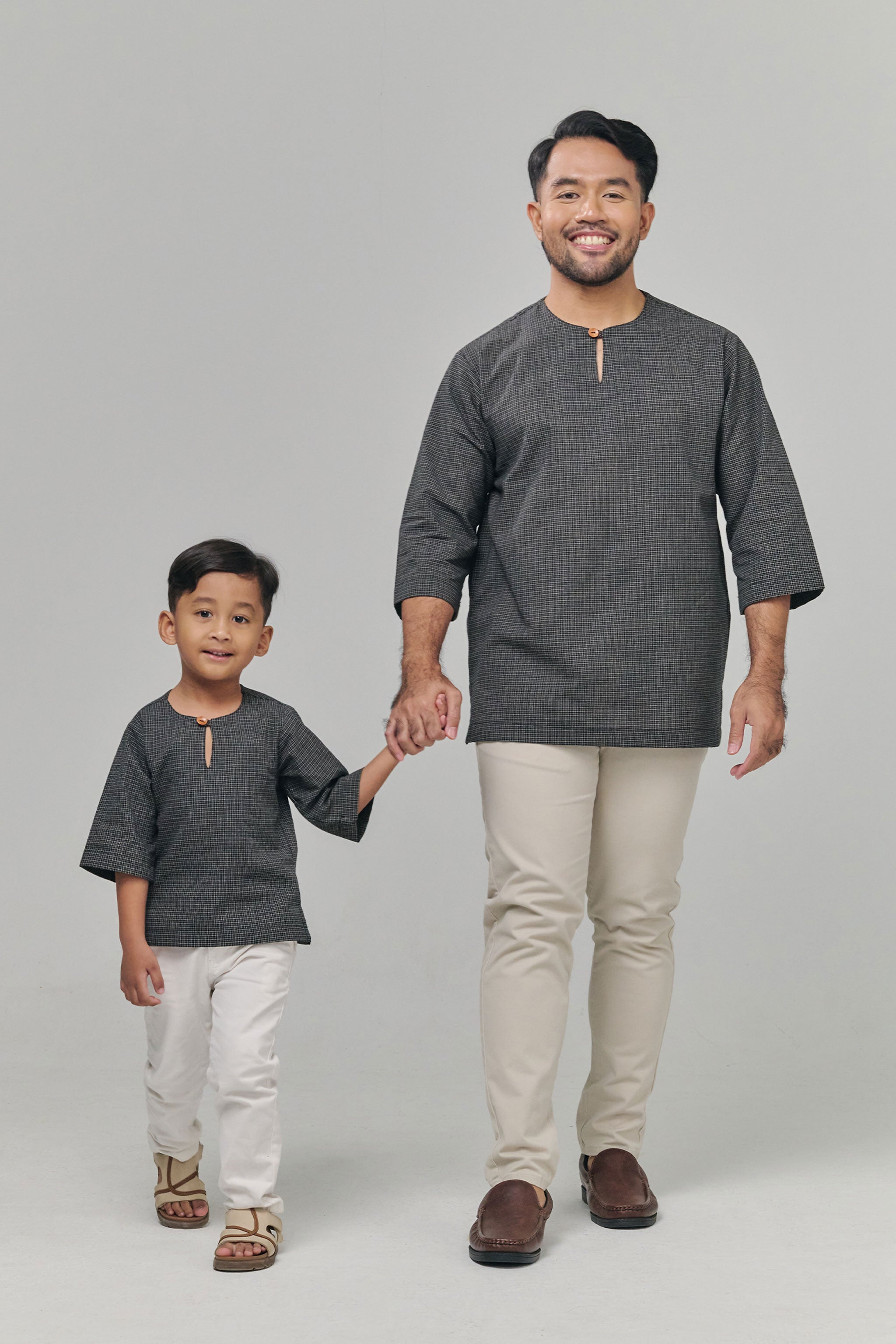 Designed with a teluk belanga neckline and 3/4 sleeves, this kurta combines classic charm with practical comfort for everyday wear, family gatherings, or festive occasions. Its relaxed fit allows easy movement while maintaining a neat, polished look.