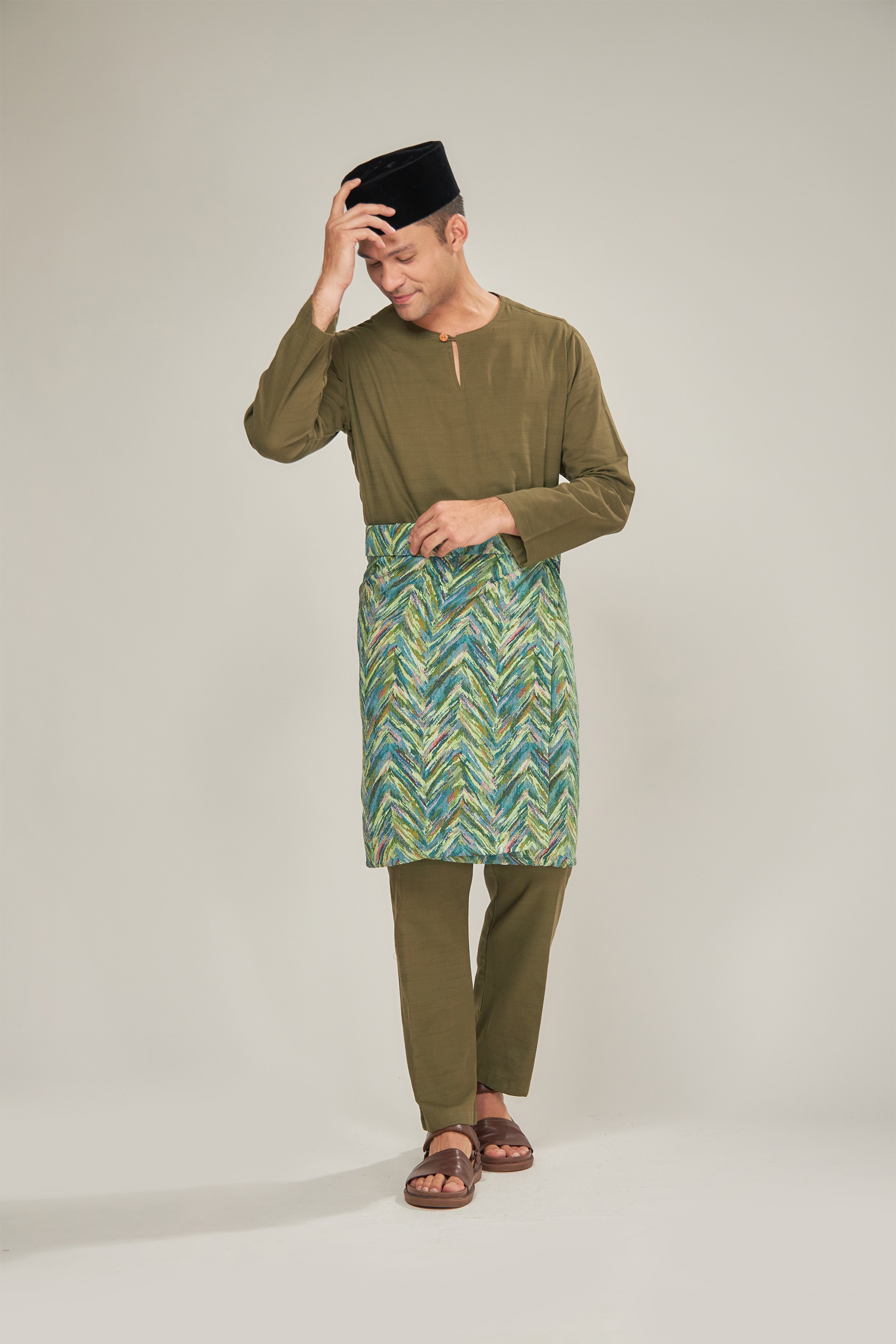 ELHAN Baju Melayu Men - Army Green