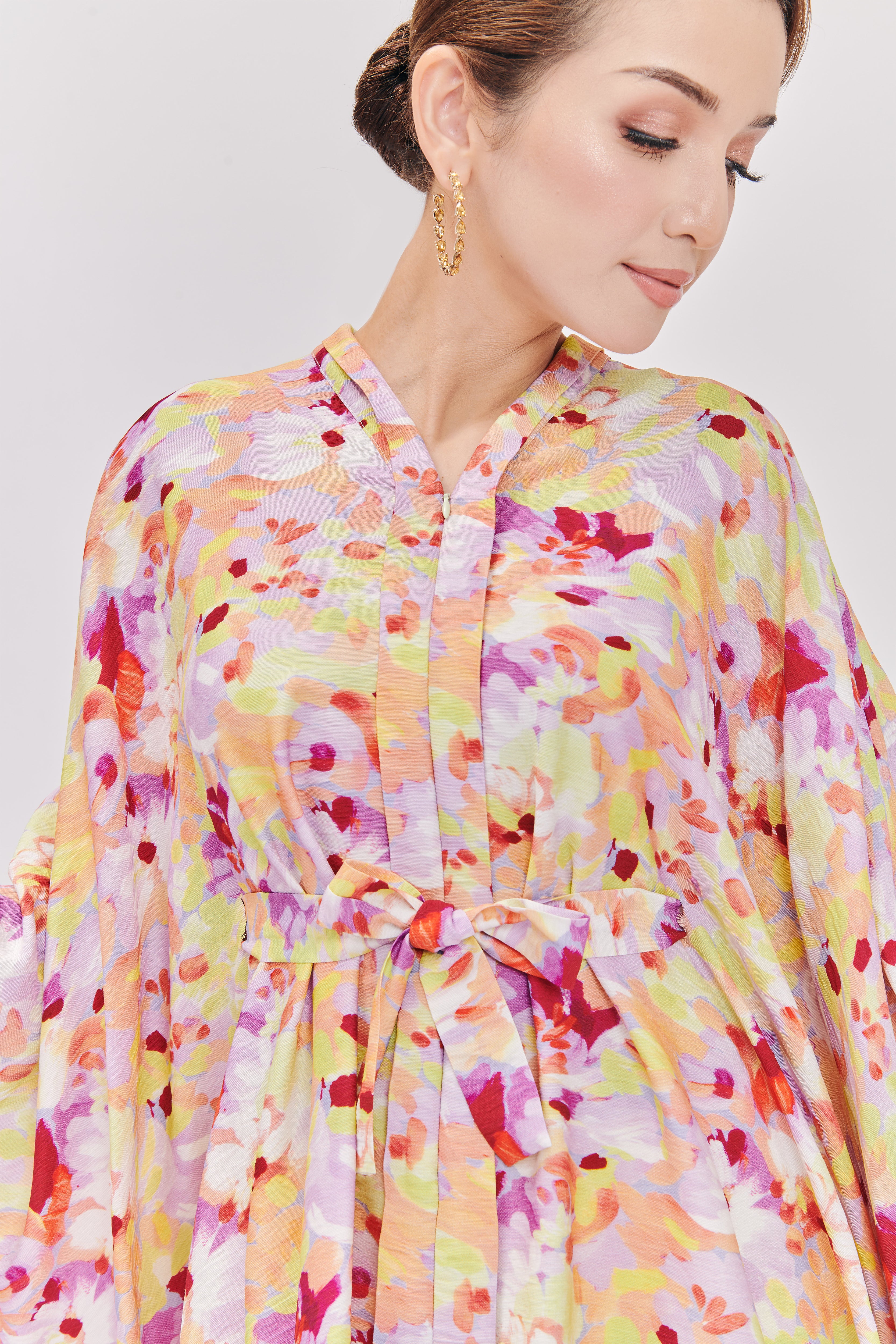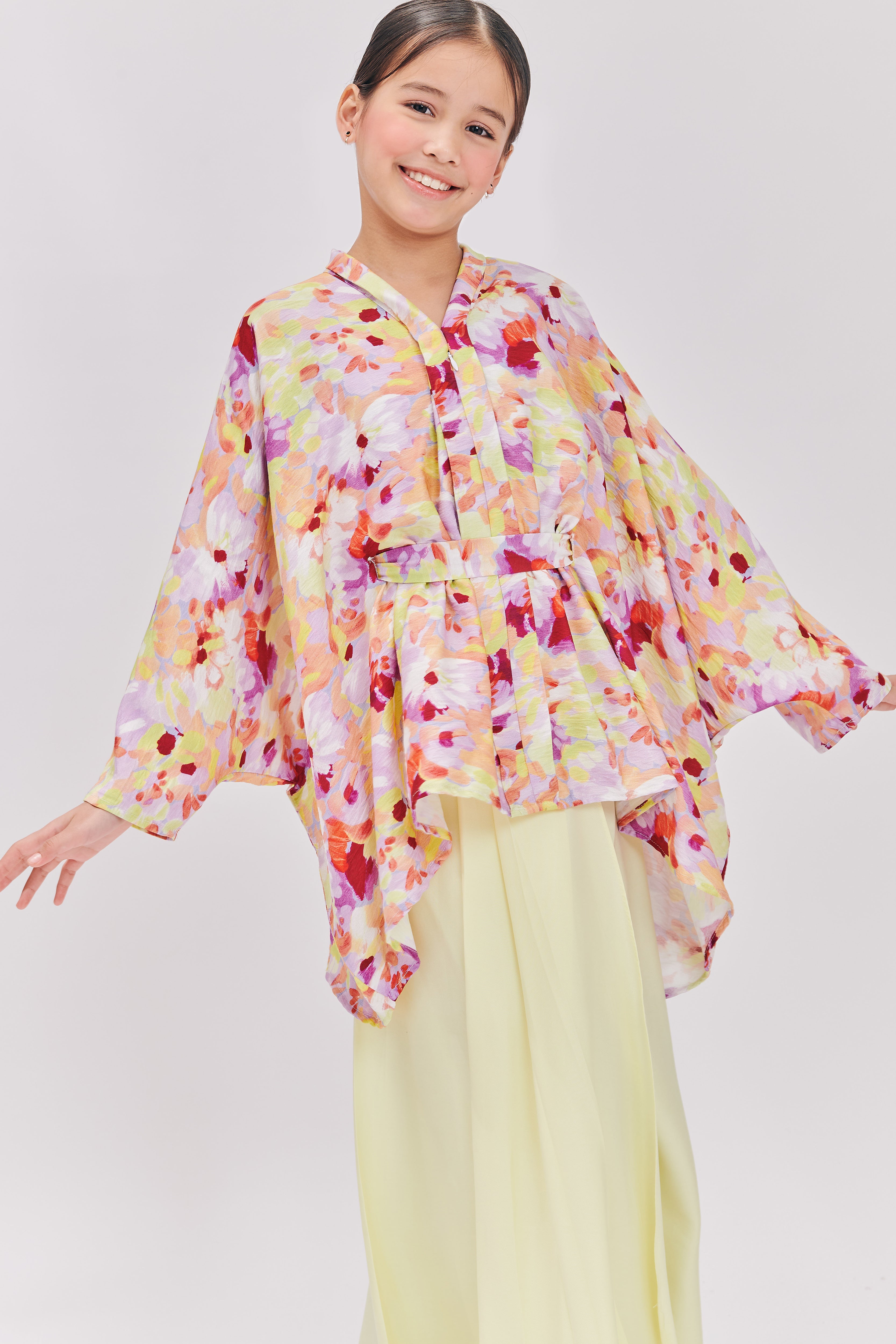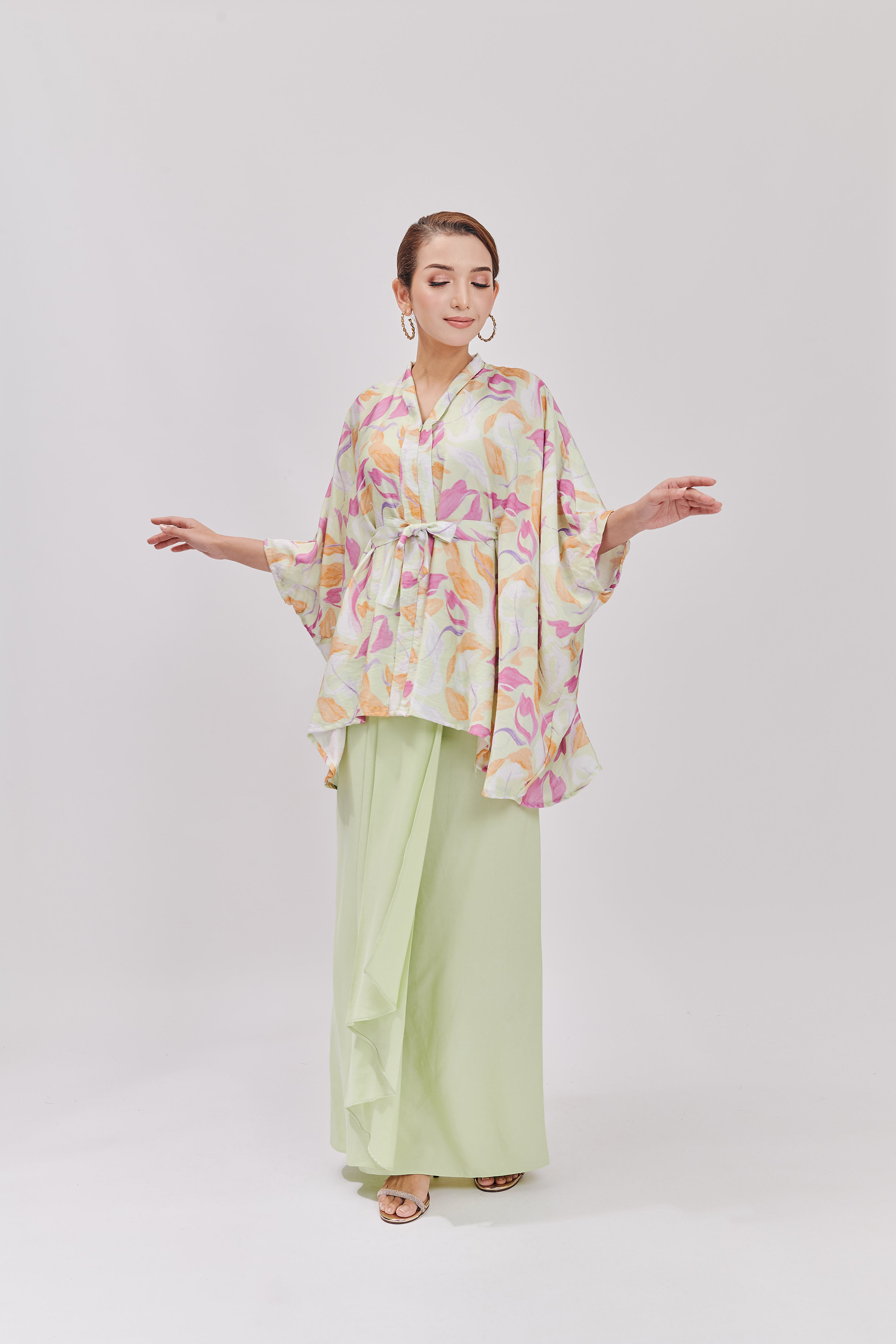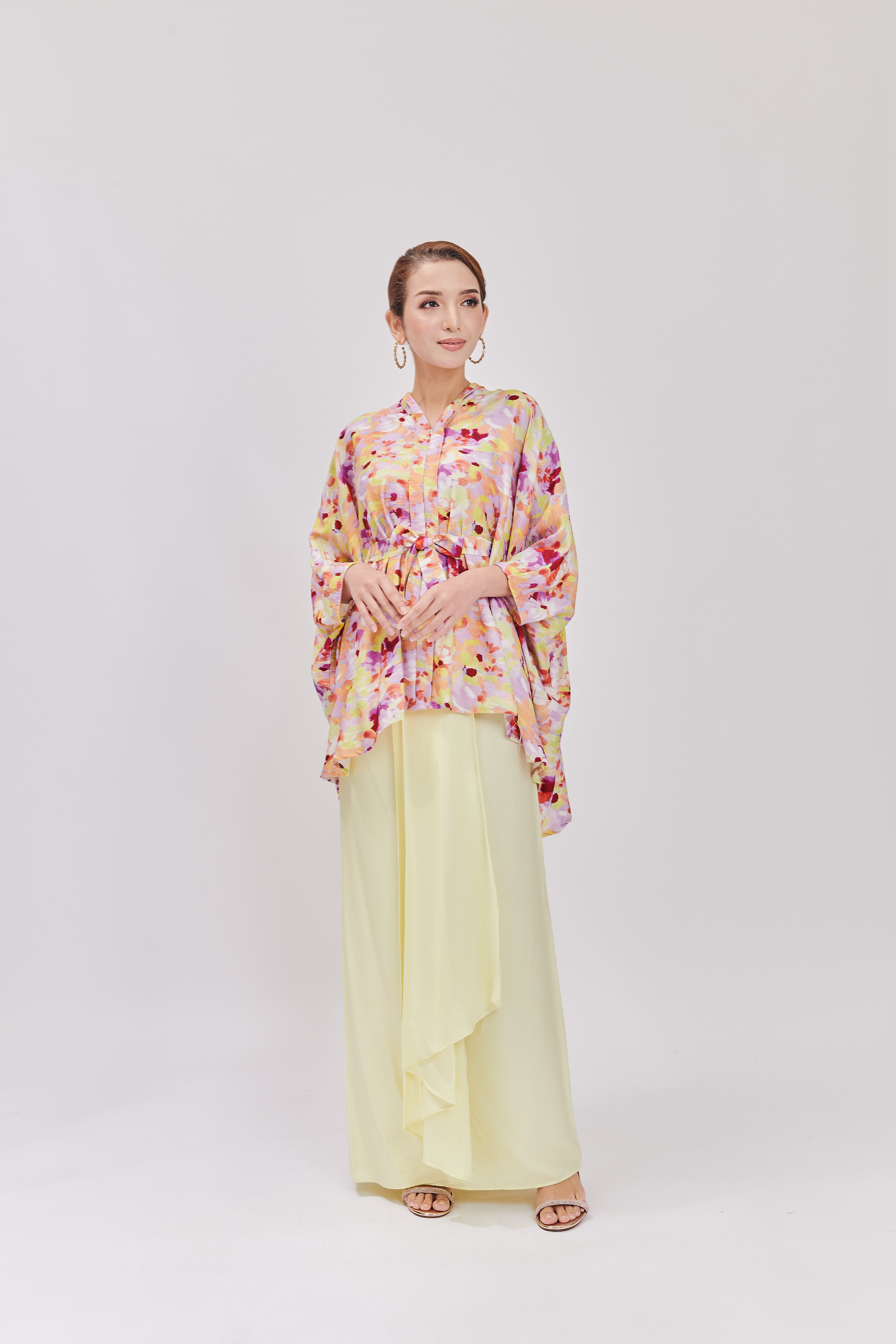 Relax in the effortless elegance of the HANYA DEMURÉ Kurung, a beautiful blend of traditional kebaya charm and the ease of a batwing top. The graceful the instant pario skirt, made from premium quality tencel, adds a touch of flow while providing a soft, luxurious feel. Crafted from premium materials, this piece offers both comfort and style, making it perfect for Raya or any special occasion.