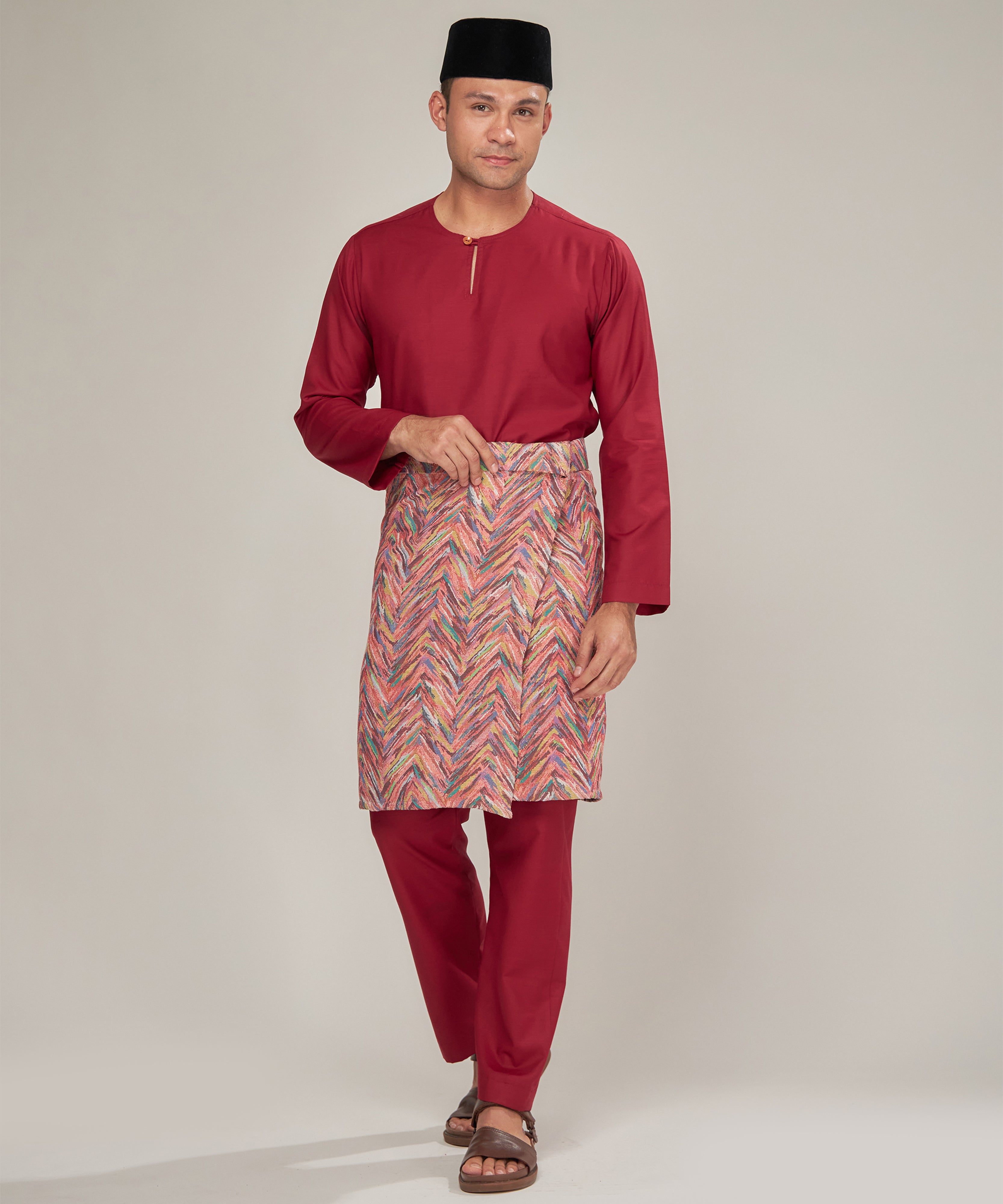 ELHAN Baju Melayu Men - Burgundy Red
